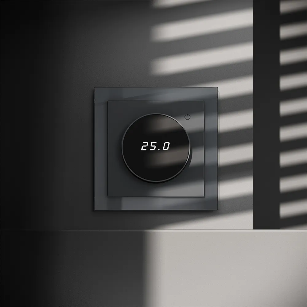 Терморегулятор полностью совместим с пластиковыми и стеклянными рамками серии S70, позволяя создать цельную, стильную композицию на стене вместе с розетками, выключателями и другими устройствами.