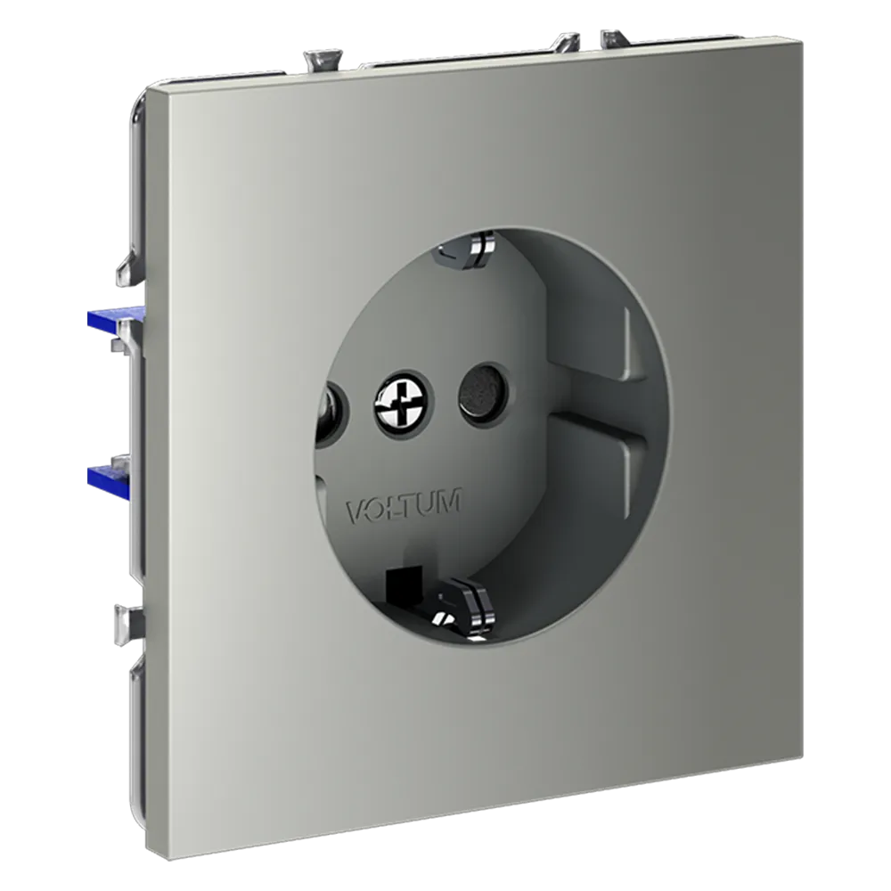 Розетка встраиваемая VOLTUM S70 с заземлением и защитными шторками 16А (сталь)