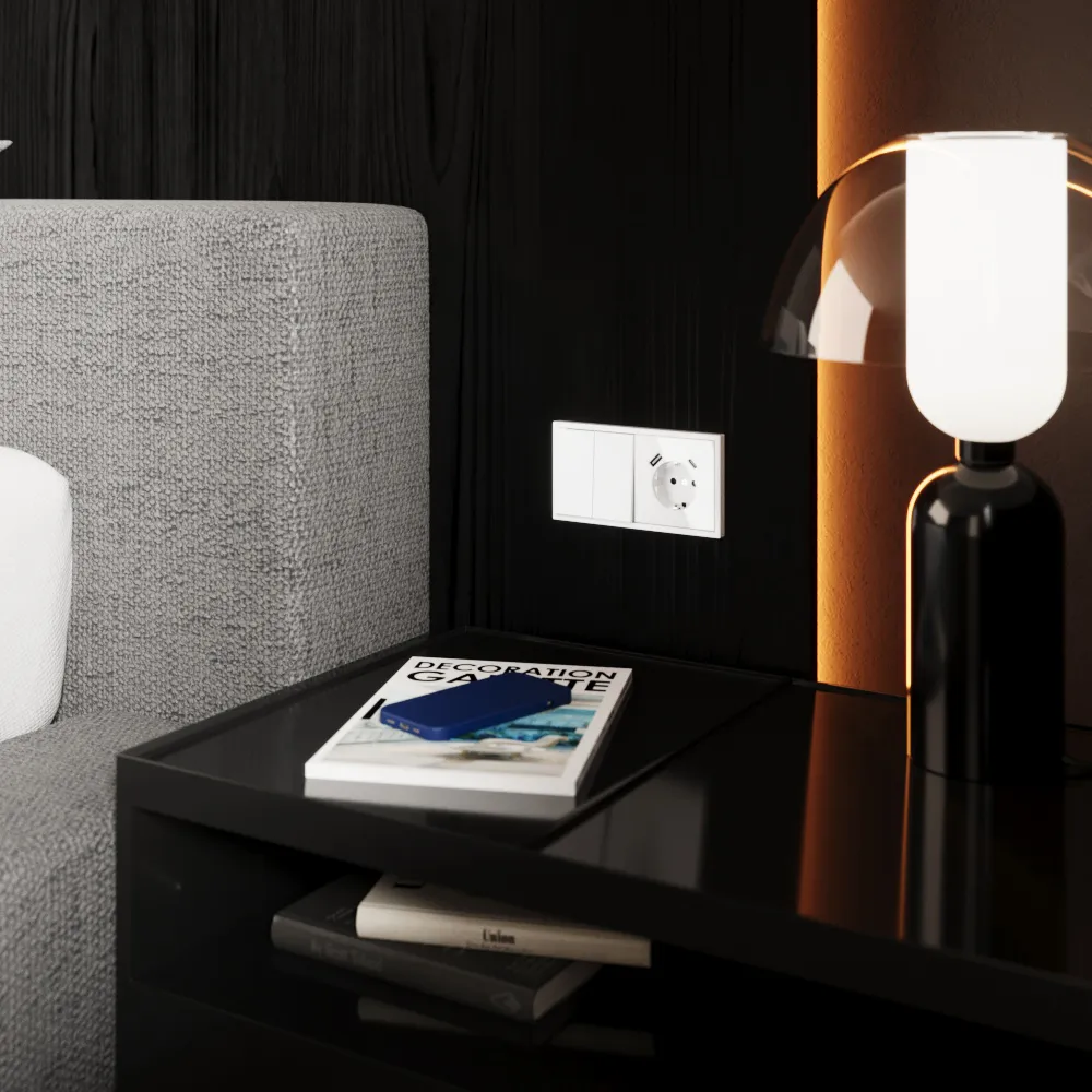 В отличие от обычного выключателя, перекрёстный переключатель используется в связке с двумя проходными переключателями, позволяя включать и выключать свет из любого количества мест. Двухклавишная версия даёт возможность управлять двумя световыми зонами одновременно — например, основным освещением и декоративной подсветкой — сохраняя при этом полную свободу перемещения по помещению.